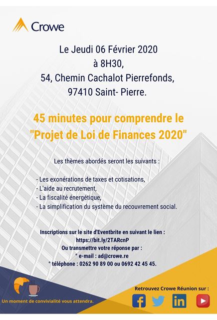 Crowe Réunion vous invitent le jeudi 06 février 2020 à Saint-Pierre (Pierrefonds)