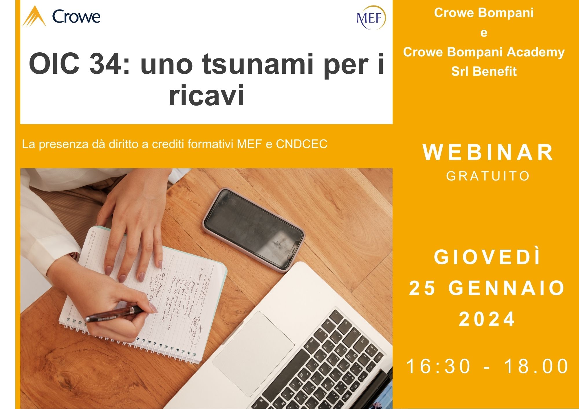 La presenza al webinar darà diritto a crediti formativi MEF e CNDCEC!