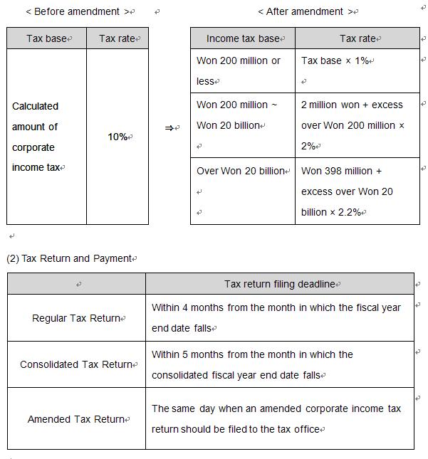 Before amendment, when interest and dividend income are paid to domestic companies, the corporate income tax was withheld, but the local income tax was not. Under the amended local income law provisions, the local income tax shall be withheld on interest and dividend income paid todomestic companies, which is applicable to any interest or dividend income paid on or after January 1, 2015.