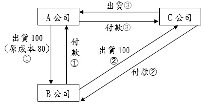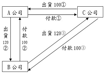(1)例如A公司將產品以100元(成本80)賣給B公司,B公司再將該產品以100元賣給C公司,最終C公司再將產品以100元賣回給A公司;透過上開循環交易,最終產品又回到A公司;再透過一筆資金將應收帳款與應付帳款對沖;因A公司出售產品之價格與買回產品之價格同,最終於財務報表僅導致營收虛收,利潤因存貨價值由原80元墊高為100元而虛增20元,惟不會產生資金收、付間無法沖銷之差額。
