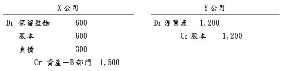2.X公司必需辦理減資,Y公司為新設立公司,簡易分錄如下: