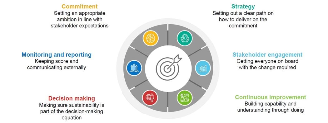 A number of organisations have made commitments to Net Zero, and this implies the need to establish credible transition plans. Translating commitments and strategies into action plans is now at the core of what CSO’s are being asked to deliver. Recognising that delivering a transition plan will require insurers to put in place some basic forms of carbon accounting, means that any approach will need to be built into business planning and portfolio management to be successful. Ultimately, we can imagine a carbon-budget being established in the same way as insurers currently allocate capital or underwriting capacity, for instance, natural perils. Integrating this type of approach into business processes will require the deployment of all the aspects of sustainability change management outlined previously.